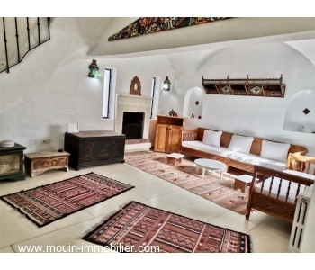 A vendre une maison au style arabe d'une belle architecture, située à Hammamet à 5mn du centre culturel et à 10mn de la plage. Elle est composée d'un spacieux salon - salle à manger avec un coin cheminé, quatre chambres à coucher, une cuisine ouverte sur une terrasse, une salle de bain et une salle d'eau.
