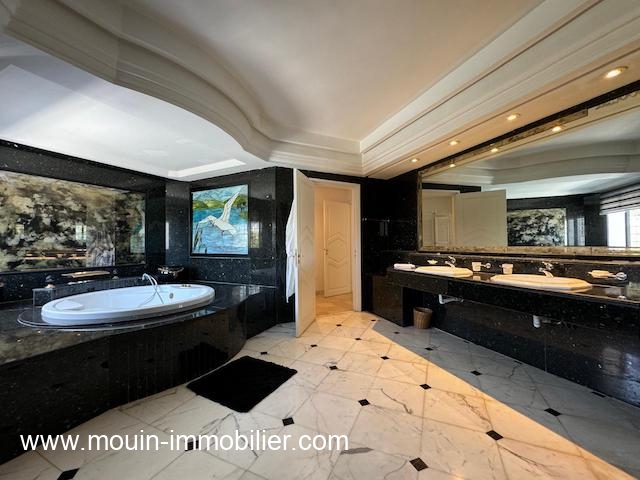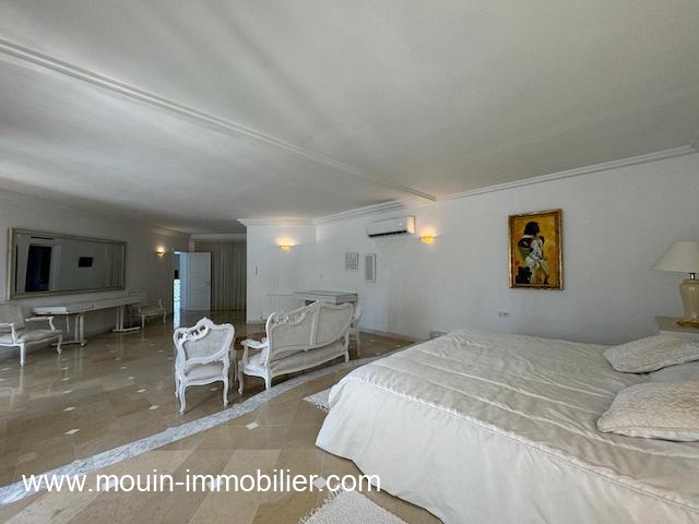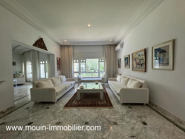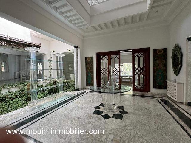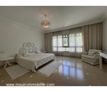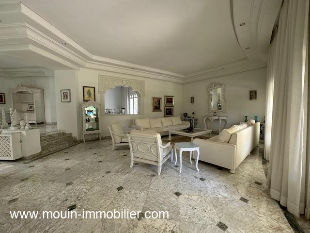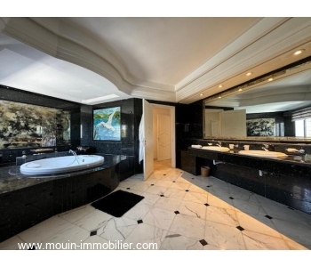La villa est érigée sur deux niveaux, elle offre au rez de chaussée un agréable hall d’entrée avec un jardin d’hiver, un séjour avec un coin cheminé, un double salon deux salles à manger (communicantes avec le jardin et piscine), une salle d’eau invités, une cuisine équipée ouverte sur une immense terrasse, une cuisine secondaire, un bloc pour le personnelle composé d’une buanderie, une chambre.