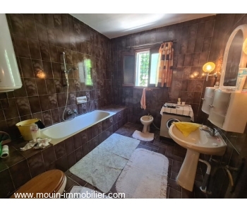 Bâtie sur un terrain de 500m2, elle offre un spacieux salon – salle à manger ouvert sur une agréable veranda donnant sur un beau jardin arboré et planté, une petite cuisine ouverte sur une salle à manger communicante avec le salon, une chambre (aménagée en un séjour), deux chambres à coucher et une salle de bain.