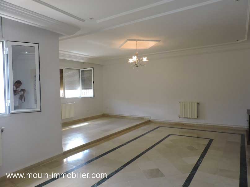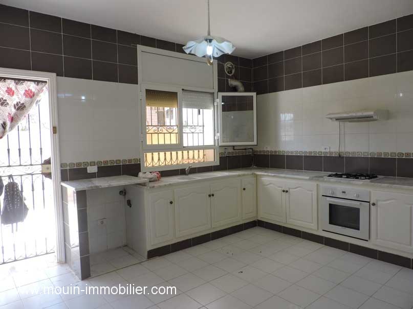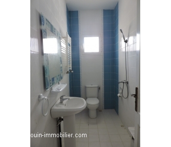 A louer à l’année un rez de chaussée de villa spacieux et lumineux idéalement placée à Hammamet proche du centre culturel, dans un quartier calme et résidentiel. Il offre un spacieux salon, une belle cuisine s’ouvrant sur une terrasse, deux chambres à coucher (et une 3éme condamnée), une salle de bain et une salle d’eau. La propriété est équipée de chauffage central et d’une clim et elle dispose d’un parking.