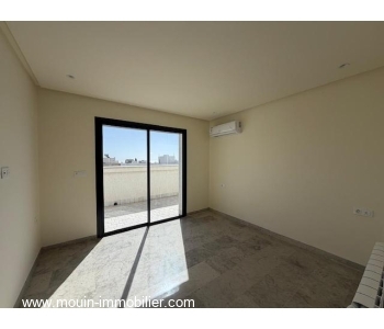 A louer à l’année un coquet appartement ocuupant le 3eme et dernier étage d’une residence à Hammamet centre.