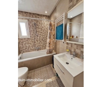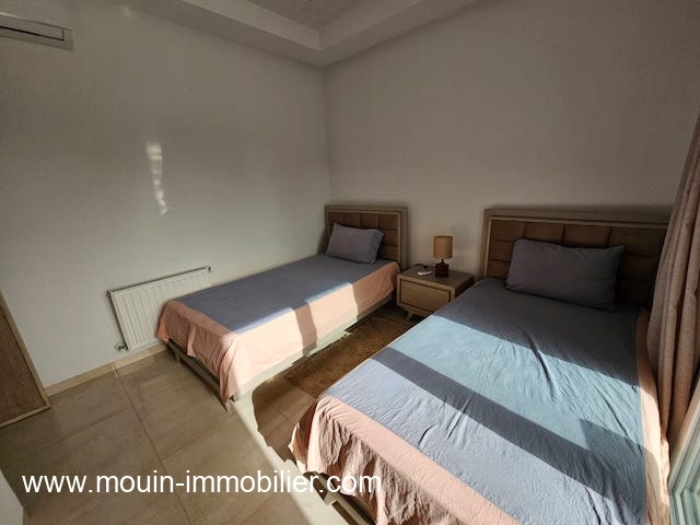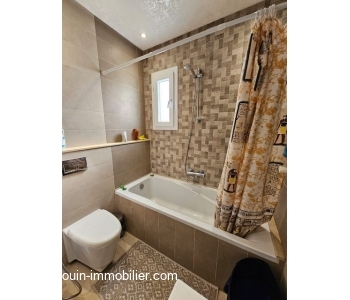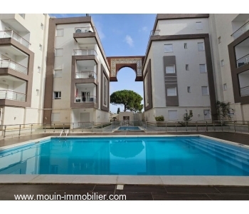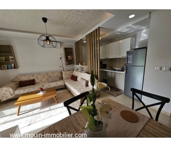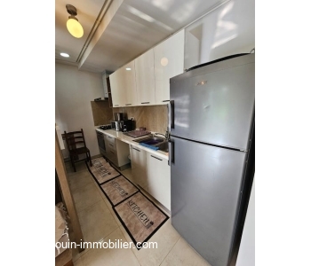 A louer à l'année un coquet appartement situé au 1er étage d'une résidence gardée et sécurisée (avec ascenseur) au niveau de la zone touristique Sud d’Hammamet, proche des Hôtels de renommés et à environ 200m de l’une des plus belles plages de Hammamet.