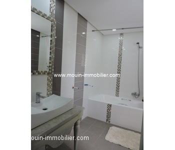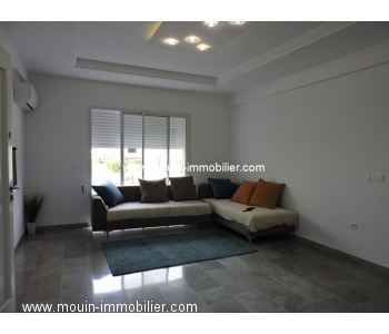 A louer à l'année un appartement neuf meublé avec gout situé dans un quartier résidentiel à Mrezka et à deux pas de la plage. Il est composé d'un salon, une cuisine équipée, trois chambres à coucher et une salle de bain.