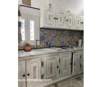 A louer à l’année un coquet appartement d’un charme atypique traditionnel et d’une belle architecture arabesque, situé à Hammamet Sud proche de l'hôtel Phenicia.