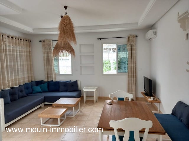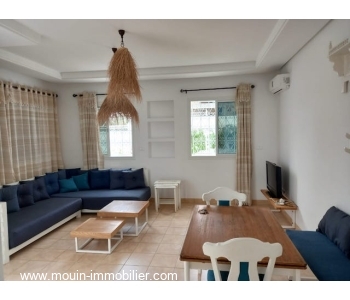 A louer à l'année un charmant rez de chaussée de villa situé à Hammamet Nord dans un quartier calme et résidentiel.