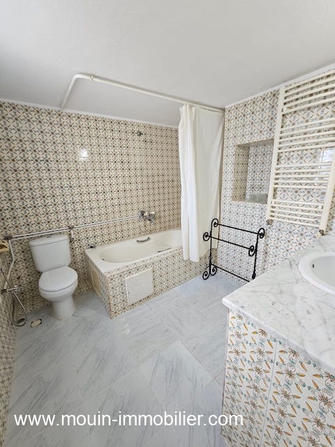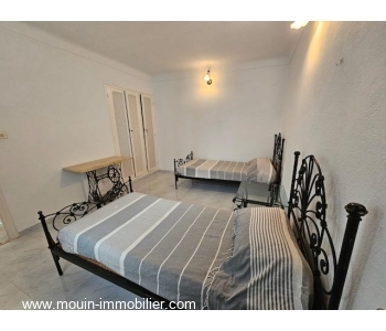 A louer à l'année une villa érigée sur deux niveaux et située au Corniche d'Hammamet dans une coquette résidence composée de 6 villas, un quartier calme, très bien accessible et proche de la plage.