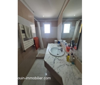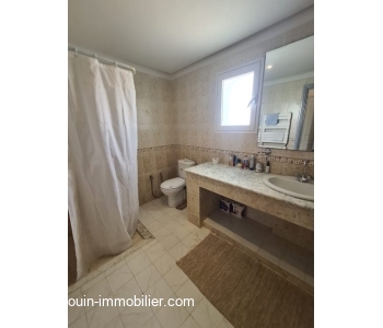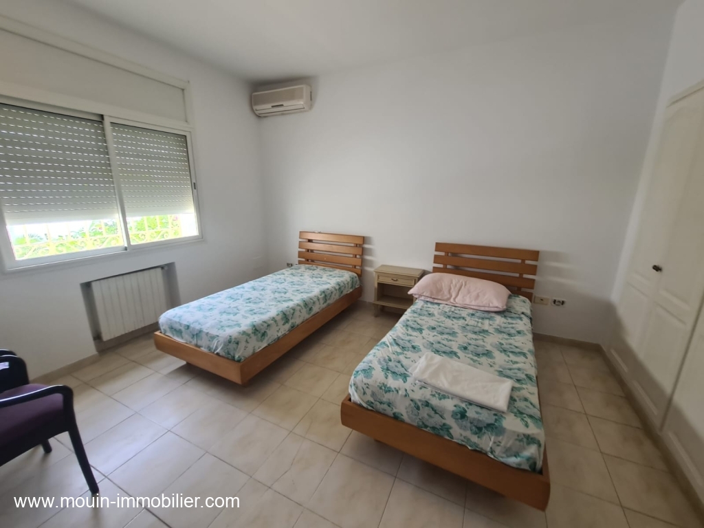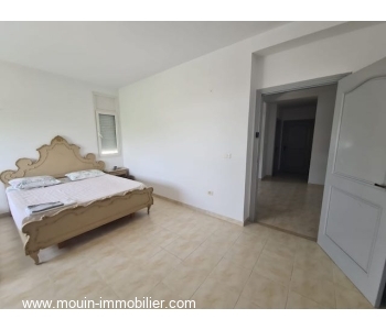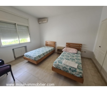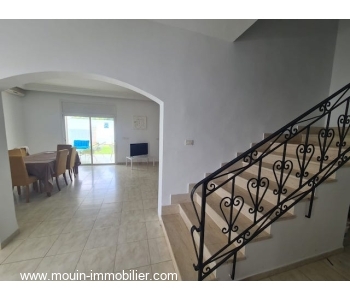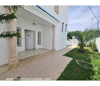 A louer à l’année une villa avec piscine érigée sur deux niveaux et située à Jinan Hammamet dans un quartier calme, résidentiel, sécurisé et proche de la plage.