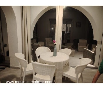 A louer pour des courtes durées un bungalow pieds dans l'eau, bien aménagé, situé Jinan Hammamet - Complexe Le Mirage, dans une résidence gardée et sécurisée et ayant accès à la piscine, restaurants et animations d'Hotel Le Mirage.