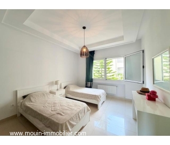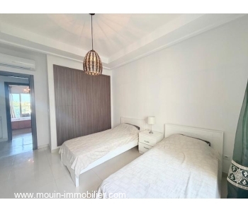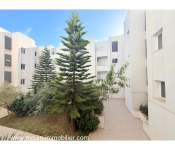 A vendre un bel appartement spacieux et bien lumineux situé à Hammamet Nord au 1er étage d’une résidence gardée et sécurisée proche des Hotels Sultan et Badira, à 400m environ de la plage et la zone touristique.