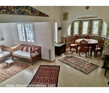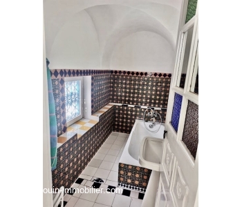 A vendre une maison au style arabe d'une belle architecture, située à Hammamet à 5mn du centre culturel et à 10mn de la plage. Elle est composée d'un spacieux salon - salle à manger avec un coin cheminé, quatre chambres à coucher, une cuisine ouverte sur une terrasse, une salle de bain et une salle d'eau.