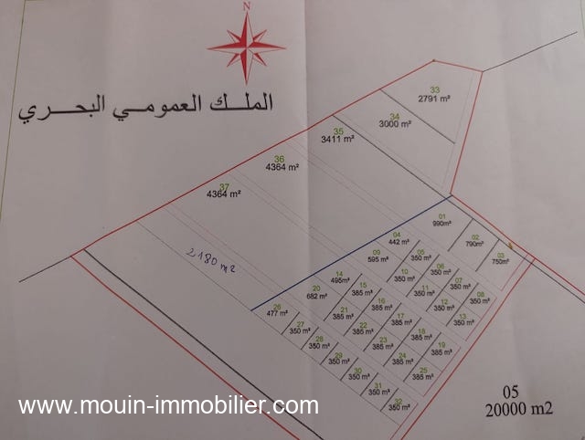 Possibilité de la vente par parcelles allant de 350m2 à 4364m2 et dont les prix de varient de 125dt à 145 dt le m2 (suivant l emplacement).