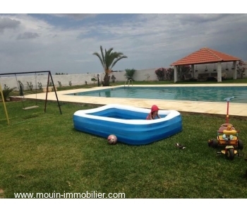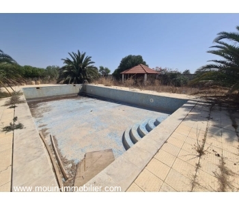 L’extérieur compte un gros jardin, une fontaine au milieu, une immense piscine, une terrasse couverte, un parking ainsi qu’une villa inachevée (en 1ère étape de construction).