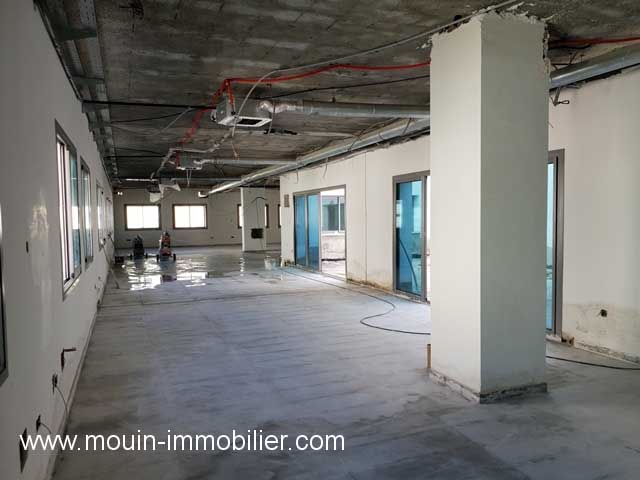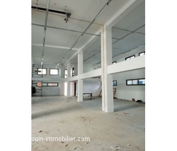 Au rez de chaussée (580m2), on trouve un hall de réception, une salle de réunion, des bureaux commerciaux, kitchenette, bloc sanitaire, zone de stockage, bureau magasinier et des vestiaires – sanitaires pour le personnel. Mezzanine (359m2) compte un bureau de direction (avec dressing et sanitaire), 8 bureaux, une kitchenette, bloc sanitaire et magasin.