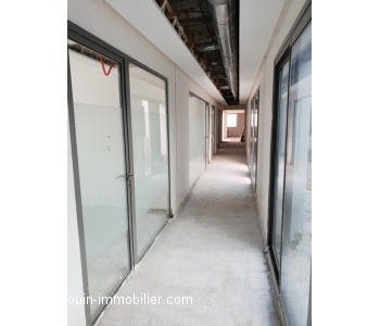 Le 1er étage (490m2)compte un hall d'entrée, un bureau de direction (avec dressing et sanitaire), secretariat, salle de reunion, 6 bureaux, kitchenette, bloc sanitaire, bureau en open space de 300m2.