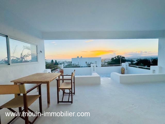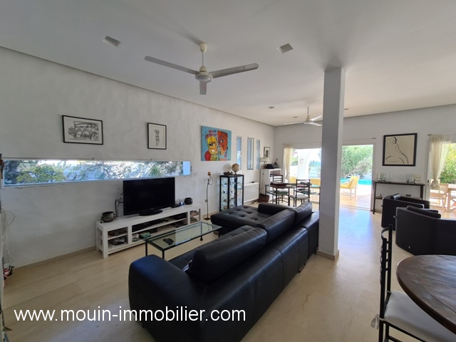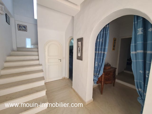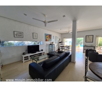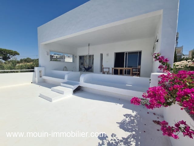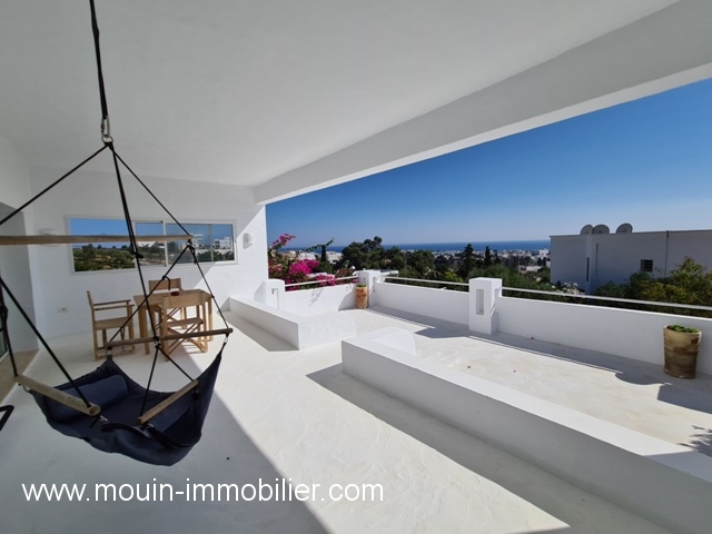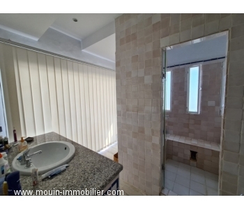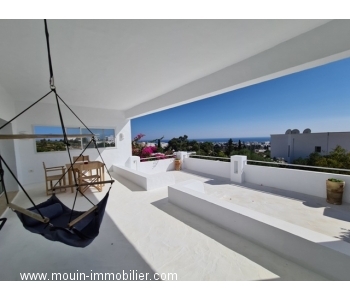 Quant à l’étage, on trouve un grand salon avec une terrasse et une suite parentale ouverte sur une grande terrasse bien aménagée et avec une vue panoramique sur la mer.