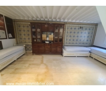 Elle est répartie en des demi niveaux et offre un spacieux salon – salle à manger qui donne sur la terrasse, un séjour marocain, une cuisine aménagée et une salle d’eau invités.