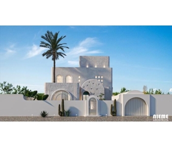 A vendre une belle demeure au style arabesque modernisé, située à Hammamet Sud - Douikhla (environ 15mn d’Hammamet Centre), dans un quartier calme et verdoyant.