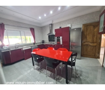 A vendre une demeure de charme, d’haut standing avec une belle architecture moderne, située à Hammamet dans un secteur calme et serein à 1Km environ du théâtre, des restaurants de renom et des hôtels Fourati, Miramar et Citronniers.