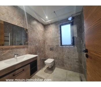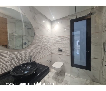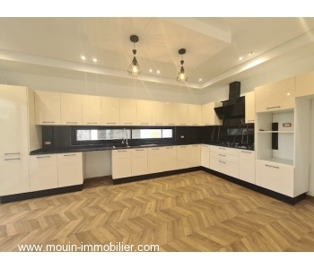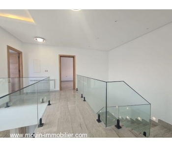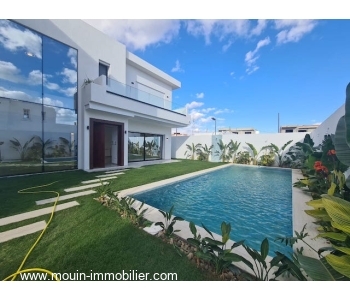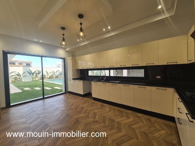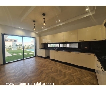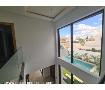 Érigée sur deux niveaux, elle offre au rez de chaussée un spacieux et lumineux salon – salle à manger ouvert sur une superbe piscine entourée d’un jardin ga-zonné et planté, une grande cuisine moderne installée donnant également sur le jardin et piscine à travers ses grandes baies vitrées, une chambre à coucher et une salle d’eau.