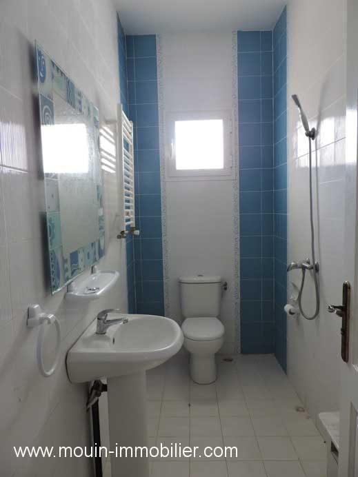 A louer à l’année un rez de chaussée de villa spacieux et lumineux idéalement placée à Hammamet proche du centre culturel, dans un quartier calme et résidentiel. Il offre un spacieux salon, une belle cuisine s’ouvrant sur une terrasse, deux chambres à coucher (et une 3éme condamnée), une salle de bain et une salle d’eau. La propriété est équipée de chauffage central et d’une clim et elle dispose d’un parking.