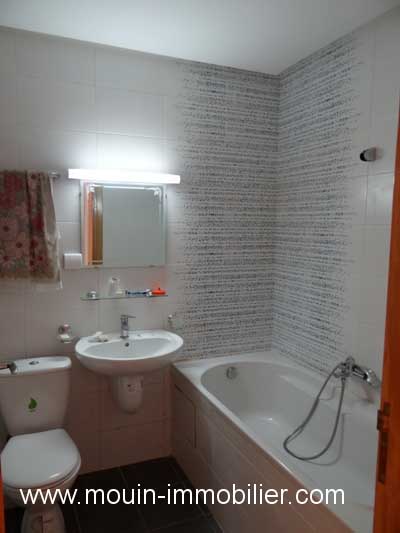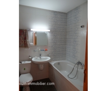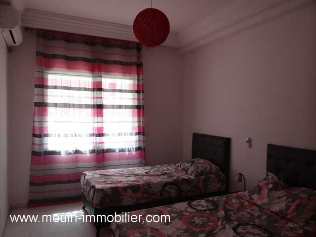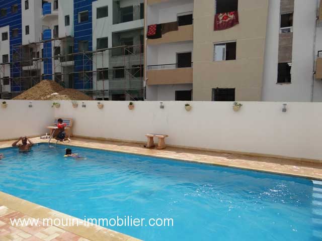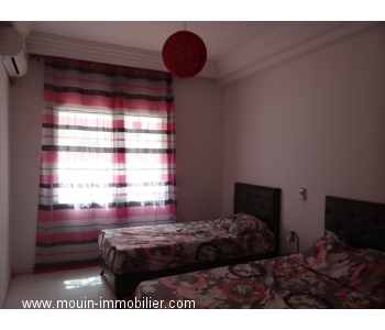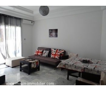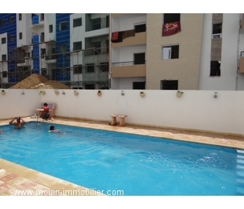 A louer à l'année (sauf durant la période du 1 juillet au 15 septembre) un bel appartement richement meublé, situé au rez-de-chaussée dans une résidence avec piscine à Hammamet Nord.