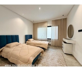 A louer à l’année un superbe appartement ayant une entrée indépendante, spacieux et bien lumineux. Il est situé au rdc d’un petit immeuble de type R+2 à Hammamet Nord proche des hotels sultan et Badira dans un quartier calme et résidentiel.