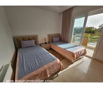 A louer à l'année un coquet appartement situé au 1er étage d'une résidence gardée et sécurisée (avec ascenseur) au niveau de la zone touristique Sud d’Hammamet, proche des Hôtels de renommés et à environ 200m de l’une des plus belles plages de Hammamet.