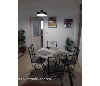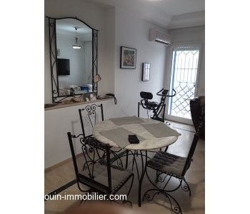A louer à l’année un coquet appartement richement meublé, situé au rez de chaussée d’une résidence gardée, sécurisée et bien entretenue à Hammamet – zone théâtre, proche de toutes les commodités de vie.