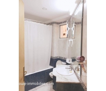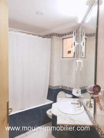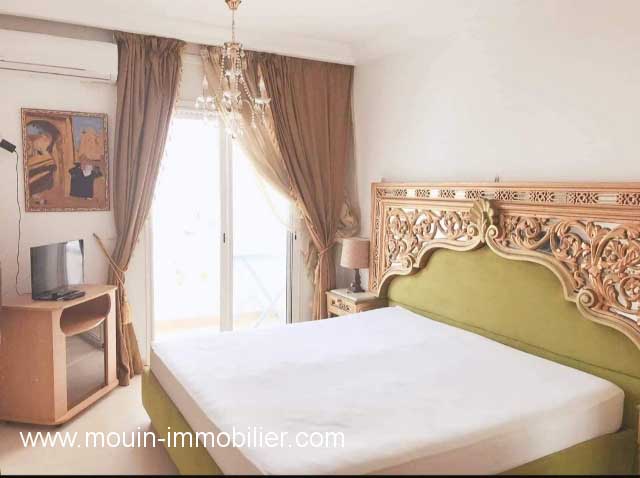 A louer à l’année (sauf durant le mois d’aout) un appartement richement meublé situé à l’étage d’une belle résidence pied dans l’eau à Hammamet.