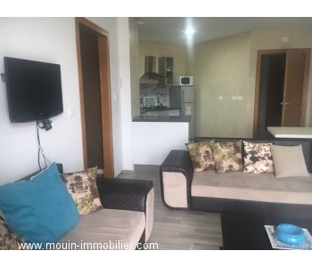 A louer à l'année un bel appartement situé dans une résidence avec piscine. Il est composé d'un salon donnant sur un balcon, une cuisine américaine équipée, une chambre à coucher et une salle de bain. L'appartement est équipé de chauffage central et de la climatisation. Option : location hors la saison estivale (juillet et aout) à 500 DT.