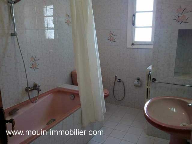 A louer à l’année une belle villa érigée sur deux niveau et bien située à El Menzah 9. Elle offre au rez de chaussée un spacieux salon – salle à manger, une chambre à coucher, une cuisine bien aménagée, une salle de bain et une salle d’eau. Quant à l’étage, elle offre une suite parentale avec une salle d’eau, deux chambres à coucher et une salle de bain commune. La propriété est équipée de chauffage central et de climatisation et elle dispose d’un beau jardin gazonné et d’un abri de voiture.