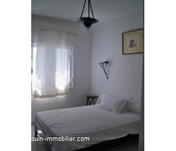A louer à l'année, un rez de chaussée de villa d’une architecture arabesque contemporaine située à résidence Jannet, dans un quartier calme avec de bon voisinage et à 100m de la plage.
