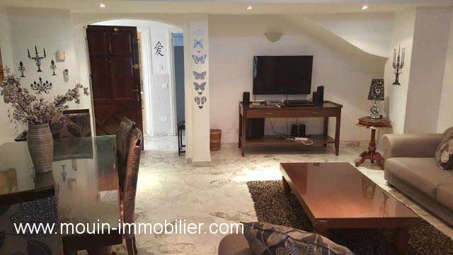 A louer à l’année, un duplex indépendant avec une magnifique vue sur mer, richement meublé situé dans une résidence gardée et sécurisée à Gammart – Palace. Il offre un salon – salle à manger, une cuisine entièrement équipée, une suite parentale (avec dressing est salle de bain), deux chambres à coucher et une salle d'eau. La propriété est équipée de chauffage central et de climatisation.