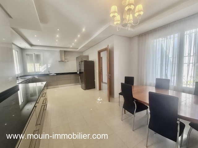A louer à l’année une belle villa moderne située à Yasmine Hammamet à deux pas de la plage, elle se compose d’un grand salon ouvrant sur une belle terrasse et la piscine, une salle à manger, une cuisine équipée, une suite et une salle d’eau visiteurs au rez-de-chaussée.