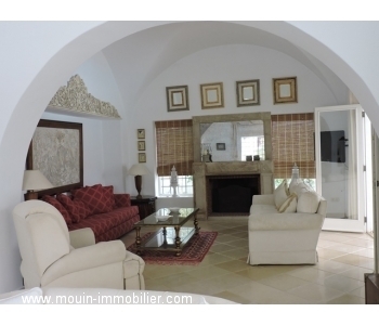A louer à l'année une magnifique demeure de charme offrant une vue mer féerique et des somptueux couchers de soleil, elle est située sur les hauteurs de Hammamet à 5 minutes de centre ville et de l’autoroute. Erigée sur deux niveaux Avec ses voutes croisée st ses belles terrasses, la villa est composée au rez-de chaussée d’un double salon, un séjour, une salle à manger, une cuisine équipée, une suite avec sa salle d’eau et un dressing, un bureau et deux salles d’eau. Quant à l’étage on trouve une belle suite parentale avec une grande salle d’eau, un grand dressing et petit coin qui peut servir d’un bureau donnant sur une terrasse avec une vue imprenable sur la mer, une deuxième suite avec sa salle d’eau et une terrasse, une chambre avec une terrasse et une salle d’eau et une buanderie. La demeure est équipée de chauffage central, climatisation, des cameras de surveillance, des panneaux solaires et de wifi et elle dispose d’un sous-sol comprenant un débarras, une loge gardien, un grand parking, une belle piscine entourée d’un beau jardin arboré. Un havre de paix a voir....