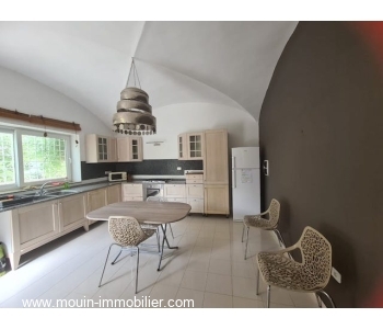 A louer à l'année une belle demeure dans un style arabe avec voûtes croisées et s’élevant sur deux niveaux, située dans la Zone Craxi - Hammamet à 2 mn de la route ceinture. Dans un quartier calme et verdoyant, faisant partie d'une propriété familiale avec un bon voisinage (entrée commune) tout en restant indépendante et sans vis à vis.