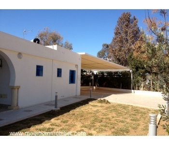 A louer à l'année une somptueuse villa avec des voûtes, arcades et coupoles située à Nabeul à 30m de la plage, dans un environnement calme et résidentiel et composée d’un grand salon aménagé avec gout, une salle à manger, deux suites, deux chambres à coucher, deux cuisines bien équipées, une salle d’eau, une chambre de bonne et une chambre de gardien.