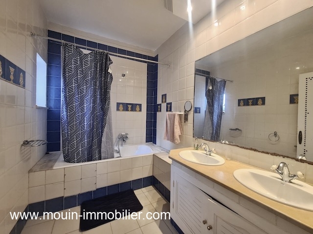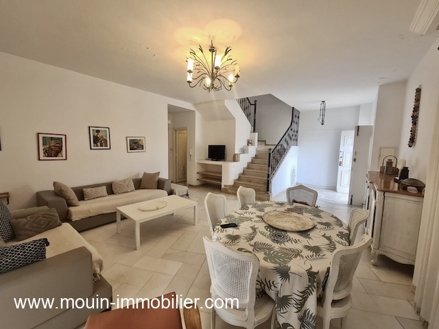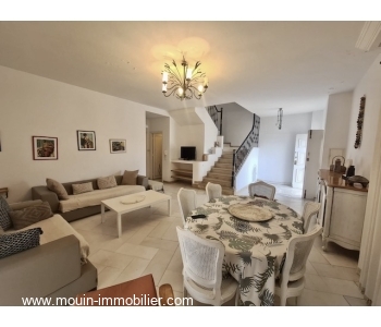A louer à l’année une superbe villa érigée sur deux niveaux, située dans un quartier calme à coté d’hôtel Club Med au Jinen Hammamet.