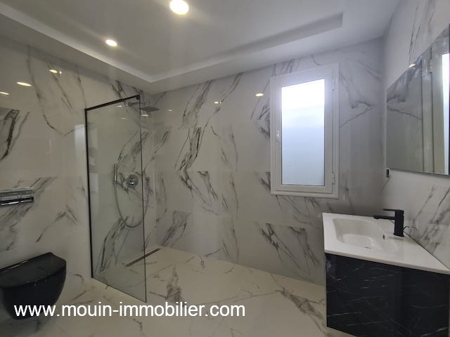 A louer à l'année une villa avec piscine d’une belle architecture arabesque contemporaine, situé à Hammamet El Faouara, à mi chemin entre la route ceinture et Birbouregba dans un quartier calme et verdoyant.