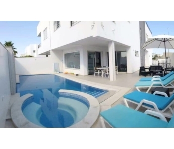 A louer à l'année une belle demeure récemment construite et idéalement placée à Yasmine Hammamet dans un luxueux quartier calme, résidentiel et proche des hôtels de renommés.