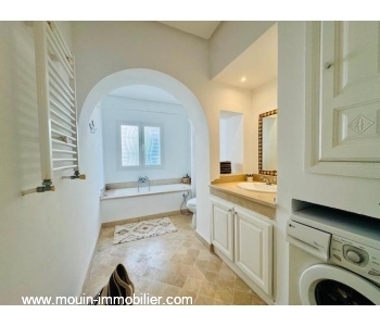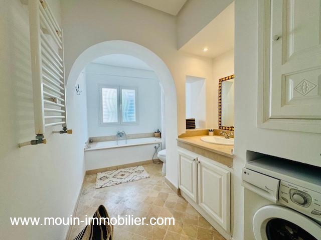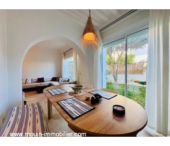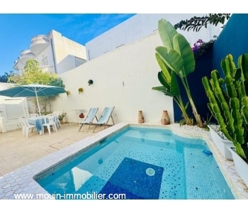 Batie au style arabesque et meublé avec un gout raffiné, il offre un agréable salon – salle à manger ouvert sur une terrasse avec une petite piscine rafraichissante, un agréable petit jardin gazonné, une cuisine entièrement équipée, deux spacieuses et lumineuses chambres à coucher, une salle d’eau et une salle de bain.
