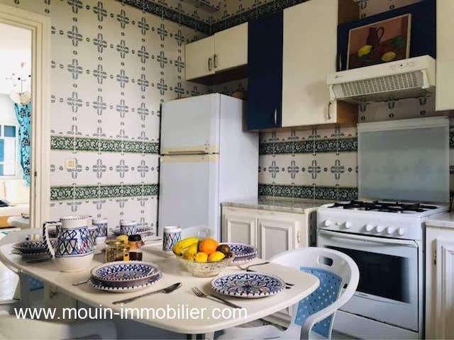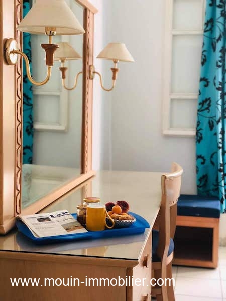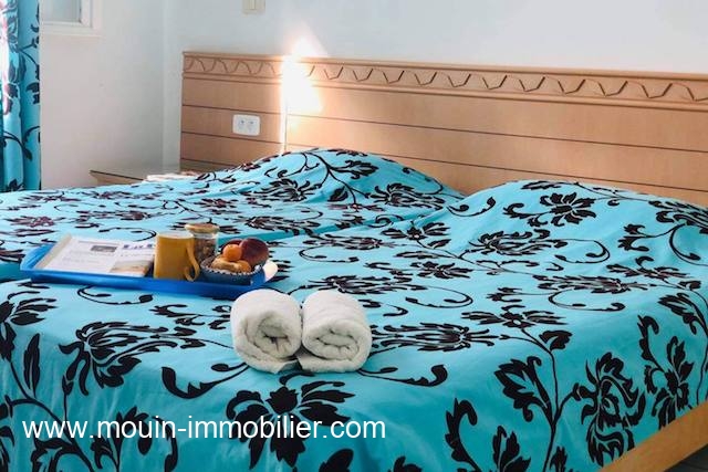 A louer pour des courtes durées un coquet appartement spacieux et lumineux, situé au rez de chaussée d’une résidence calme et gardée (24/24h) à Hammamet Nord, proche d'Hotel Nahrawes et de toutes les commodités de vie.