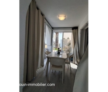 A louer pour des courtes durées un bungalow pieds dans l'eau, bien aménagé, situé Jinan Hammamet - Complexe Le Mirage, dans une résidence gardée et sécurisée et ayant accès à la piscine, restaurants et animations d'Hotel Le Mirage.