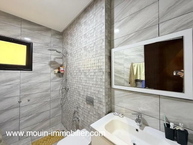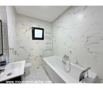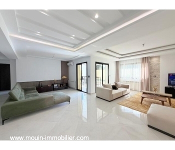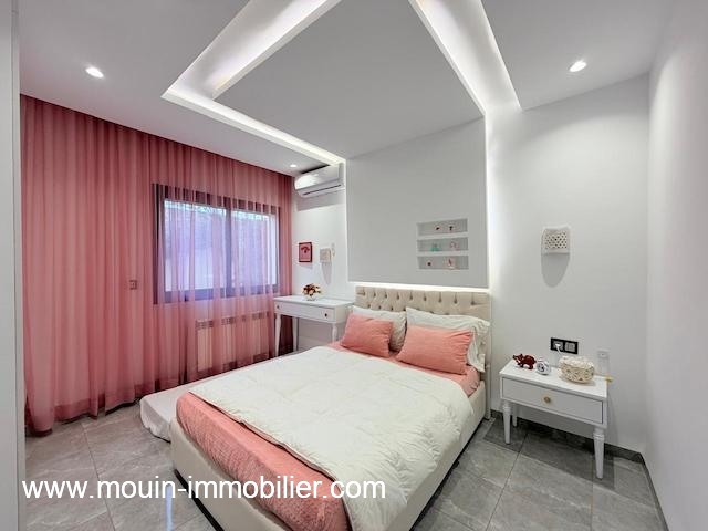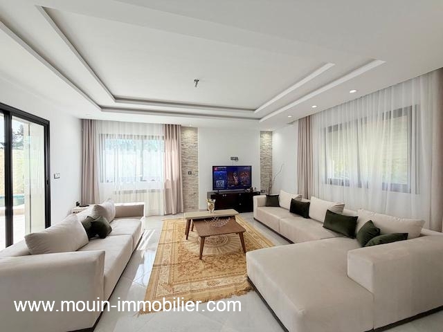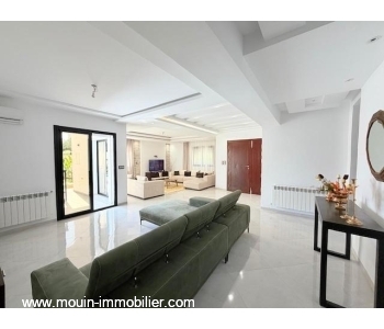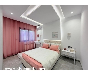 A louer pour des courtes durées un rez de chaussée de villa récemment construit et richement meublé, situé à Hammamet Nord – cité Kharouba à 500m du carrefour market et 800m de la plage.