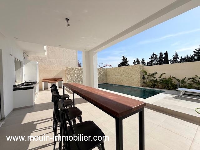 La villa est équipée de climatisation et de chauffage central et elle dispose à l’exterieur d’une place parking, une terrasse aménagé d’un coin berbecue et une belle piscine faisant l’angle.