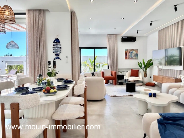 A louer pour des courtes durées, une belle demeure récemment construite, meublée et décorée d’un goût raffiné, située à Hammamet - Zone Craxi dans un quartier calme et verdoyant.