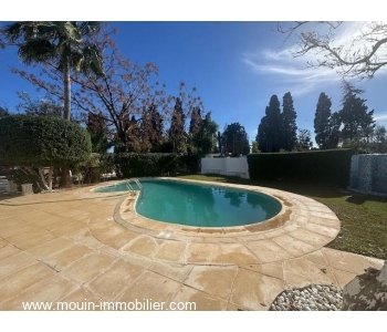 De plein pieds, la villa offre un salon – salle à manger avec un coin cheminé, une suite avec sa salle de bain, deux spacieuses chambres à coucher, une salle d’eau commune, une chambre de service et une grande cuisine ayant accés sur un cours communiquant avec l’espace extérieur qui compte une cuisine secondaire, une chambre d’amis et deux salles d’eau.