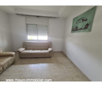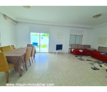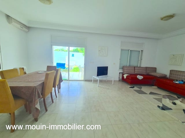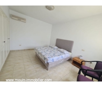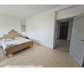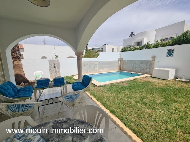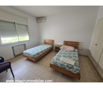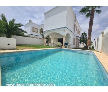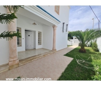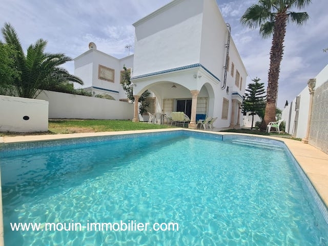 A louer pour des courtes durées une villa avec piscine érigée sur deux niveaux et située à Jinan Hammamet dans un quartier calme, résidentiel, sécurisé et proche de la plage.