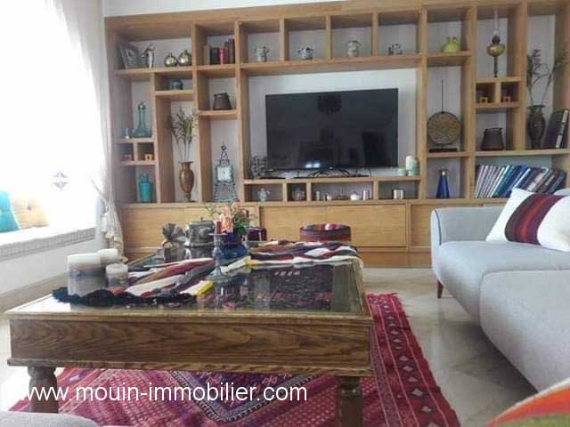 Richement meublée et décorée avec un gout raffiné, la villa est érigée sur deux niveaux, elle offre au rez de chaussée, un grand salon – séjour et une salle à manger donnant sur le jardin, la piscine et un beau jardin d’hiver, on trouve également trois suites, un Hammam, une spacieuse cuisine bien aménagée et équipée et une salle d’eau invité.